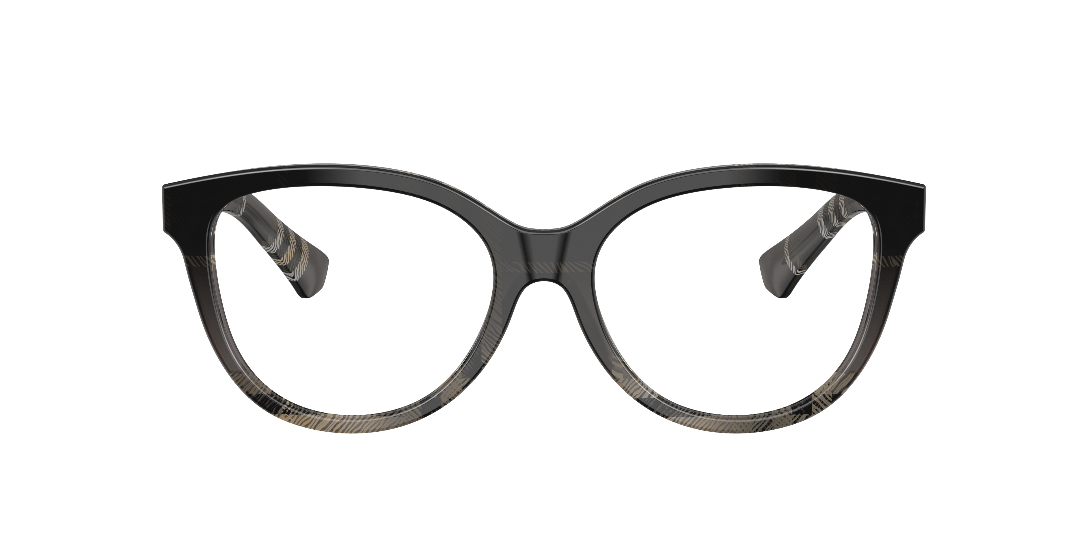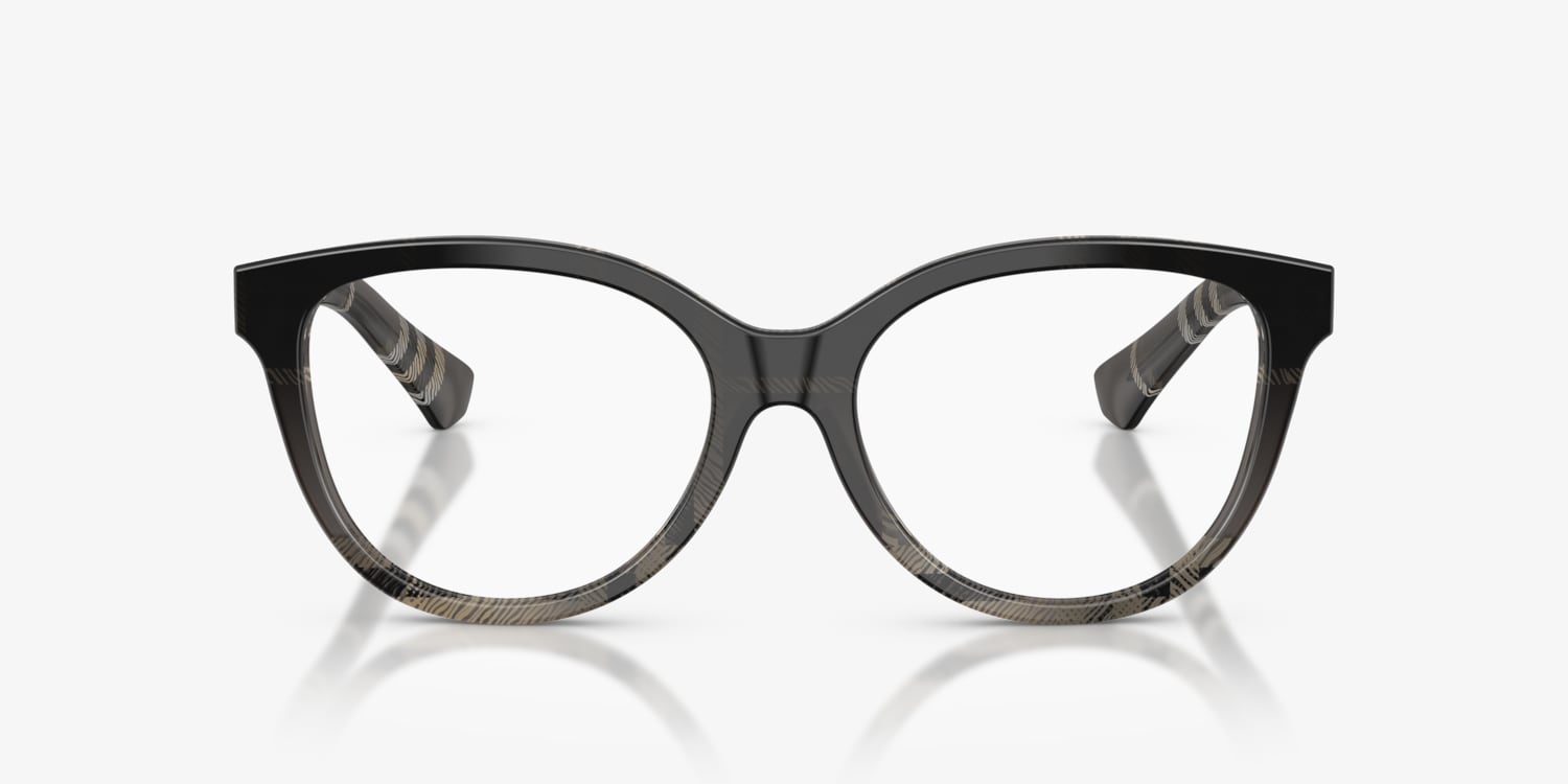 The Burberry BE2456 optical glasses feature a modern cat-eye shape with a gently arched brow line for a timeless appeal. Crafted from plastic, the full-rim grey frames offer a sophisticated touch. Designed with bio-based acetate, these Burberry glasses showcase Burberry's signature check pattern in a gradient or all-over design, blending sustainability with style. Clear lenses and acetate temples complete the refined look.