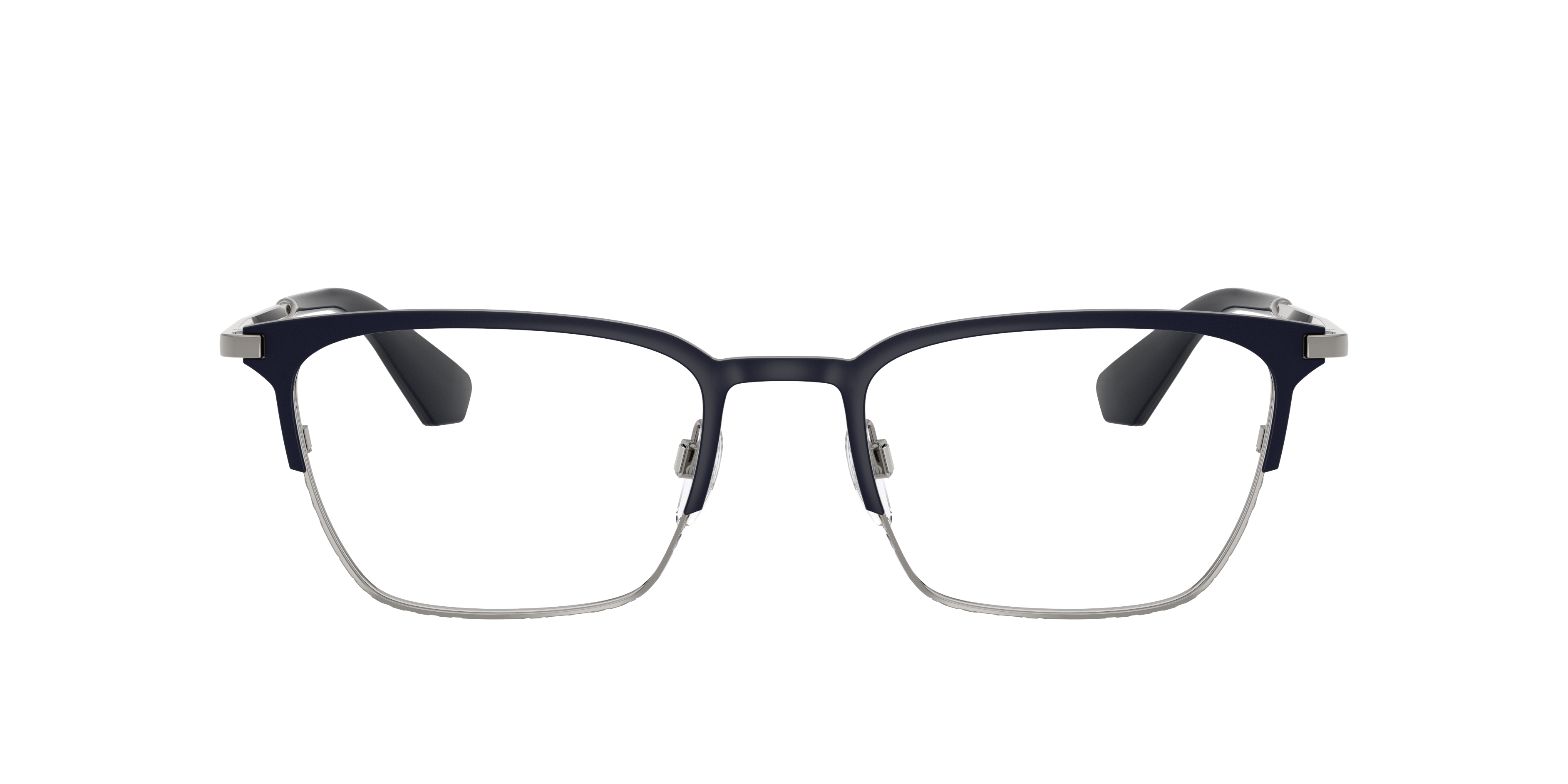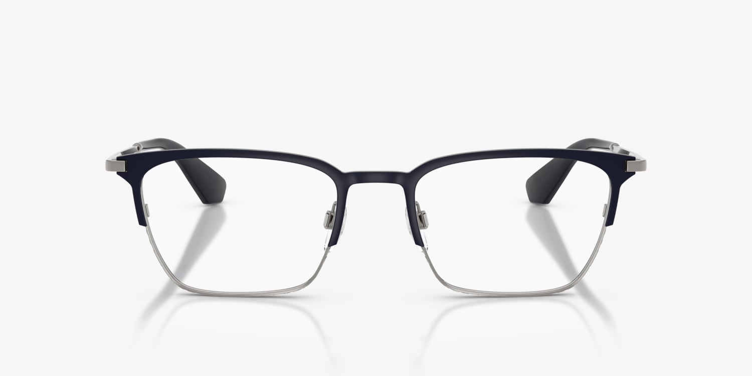 Elevate your eyewear with the Burberry BE1401 optical glasses. Crafted with sleek metal frames in a rich blue finish, these refined rectangular glasses feature an etched check rim and faceted temples showcasing the new Burberry logo lettering. An elegant contrasting brow bar adds a touch of sophistication, while eyeglasses with adjustable nosepads ensure tailored comfort and fit. Complete with nylon temple tips, these blue glasses fuse timeless design with modern detailing.