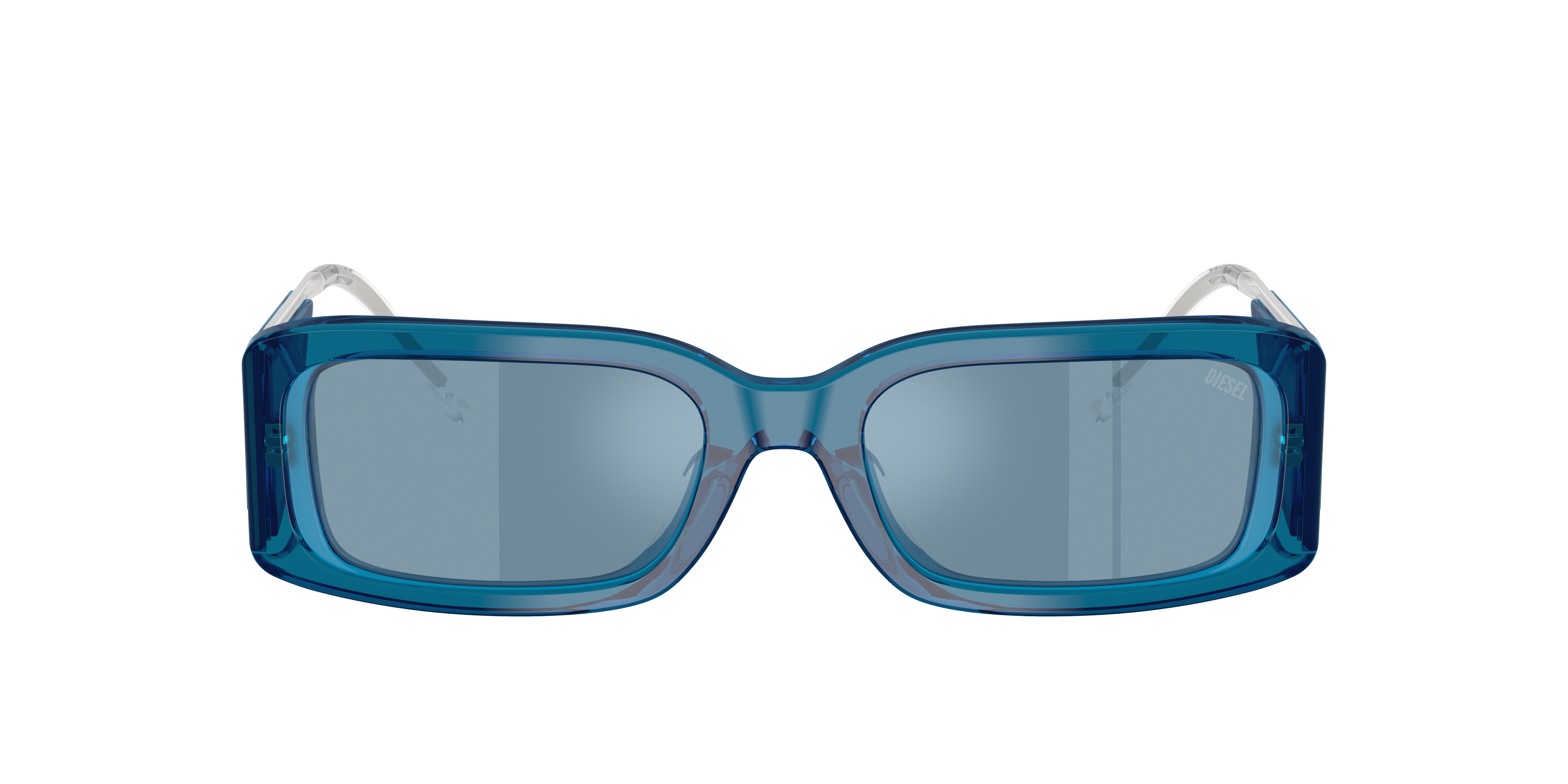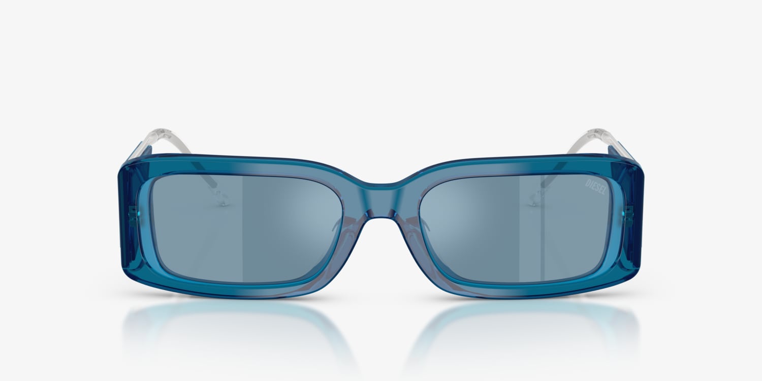 Diesel DL2017U sunglasses embody bold streetstyle with a rectangular shape that adds structure and definition. The blue plastic frames pair seamlessly with blue mirrored lenses, bringing a sleek metallic effect while reducing glare in intense light. Dimensional details and statement-making metal temples enhance the eyewear's contemporary edge. Designed to stand out, these Diesel sunglasses are perfect for those who dare to push boundaries.