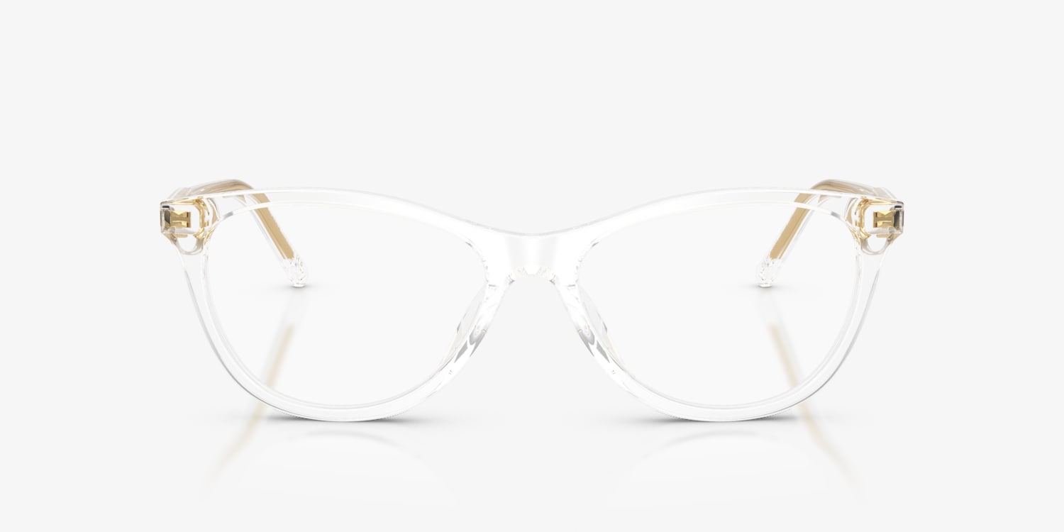 The Dolce&Gabbana DG3443 optical cat-eye frames bring a sophisticated edge to your everyday look. Made from lightweight plastic with a full-rim design, they are both durable and stylish. The clear/white frames add a contemporary touch, while the acetate temples feature an elegant under-resin Dolce&Gabbana logo. Designed for all-day comfort, these frames with a universal fit strike the perfect balance between fashion and functionality.