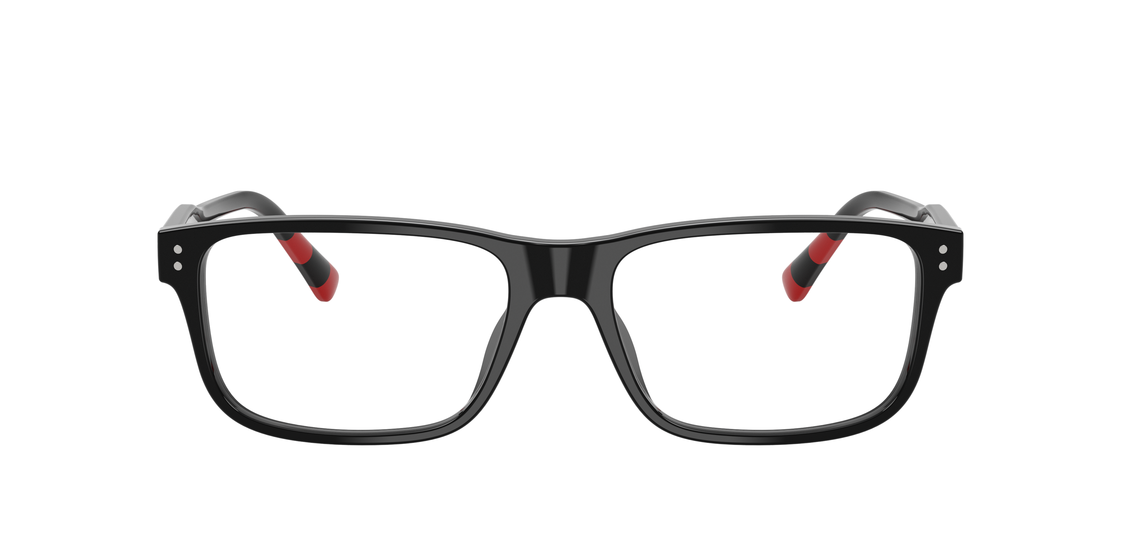 The Polo Ralph Lauren PH2302U optical glasses offer a refined, preppy aesthetic. Crafted from durable plastic, the rectangular black frames feature a black front and acetate temples adorned with iconic rugby stripes in collegiate hues. Metal front pins add subtle detail, while the Pony Player logo at the temples embodies classic Ivy League style. Designed with universal fit frames and clean, structured lines, these Polo Ralph Lauren eyeglasses are a sleek choice for adults.
