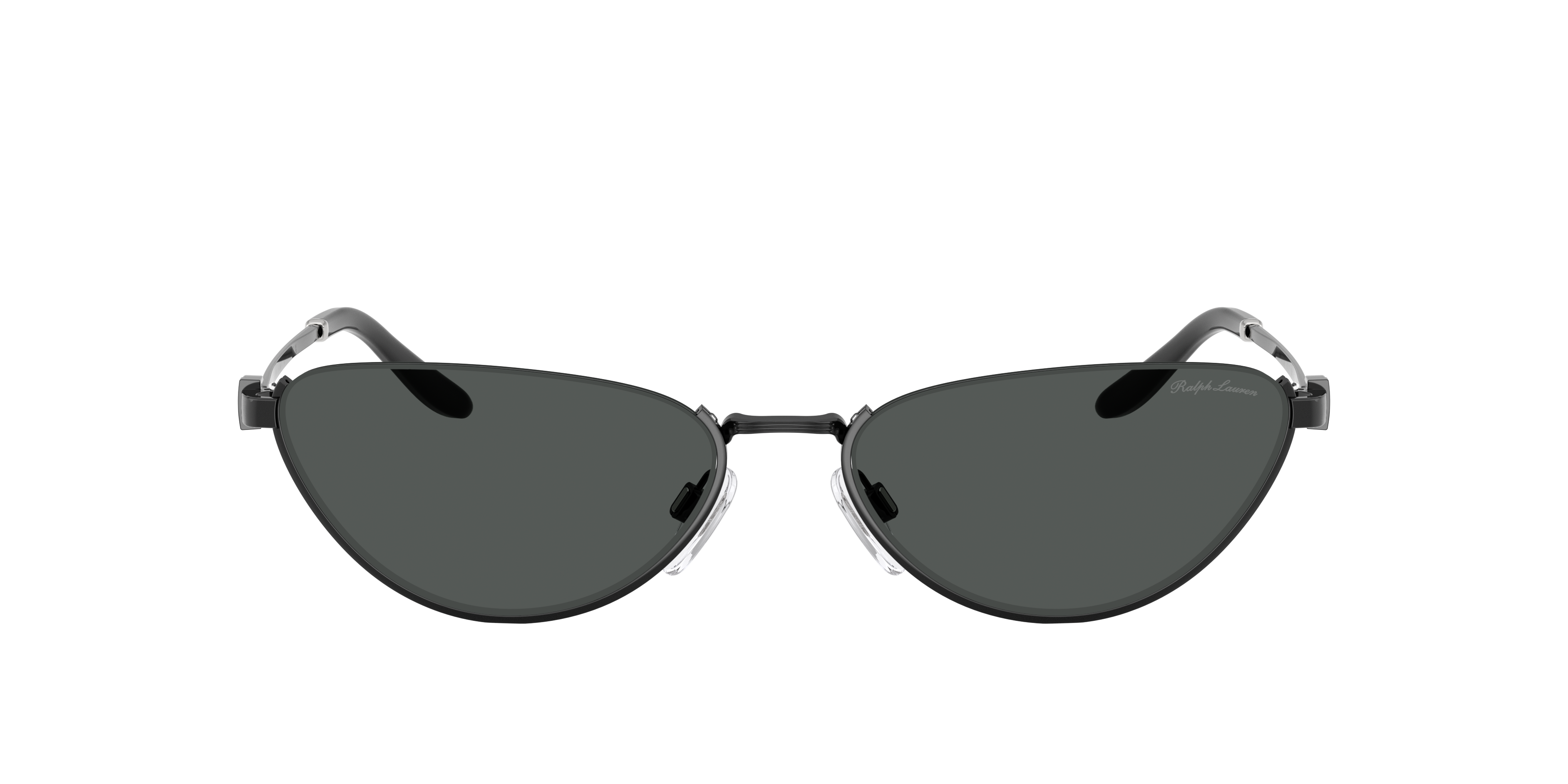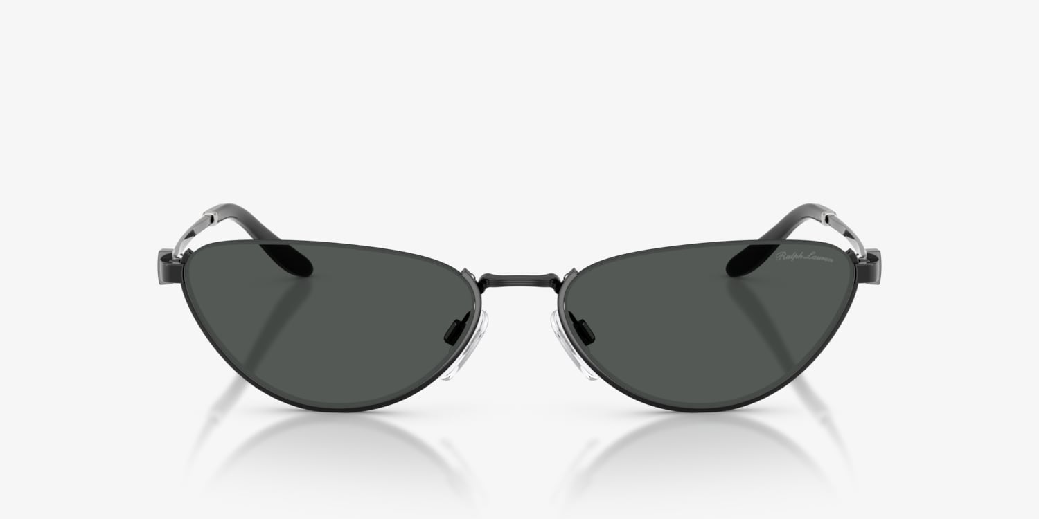 Elevate your style with the Ralph Lauren RL7095 sunglasses. These narrow cat-eye frames feature a unique reverse construction with lightweight metal on the lower rim and nylon above. Adjustable nosepads enhance comfort, while the temples showcase a striking stirrup metal detail. Finished with a black frame front and solid grey lenses, this design reflects Ralph Lauren's timeless craftsmanship, making these black sunglasses a versatile accessory.