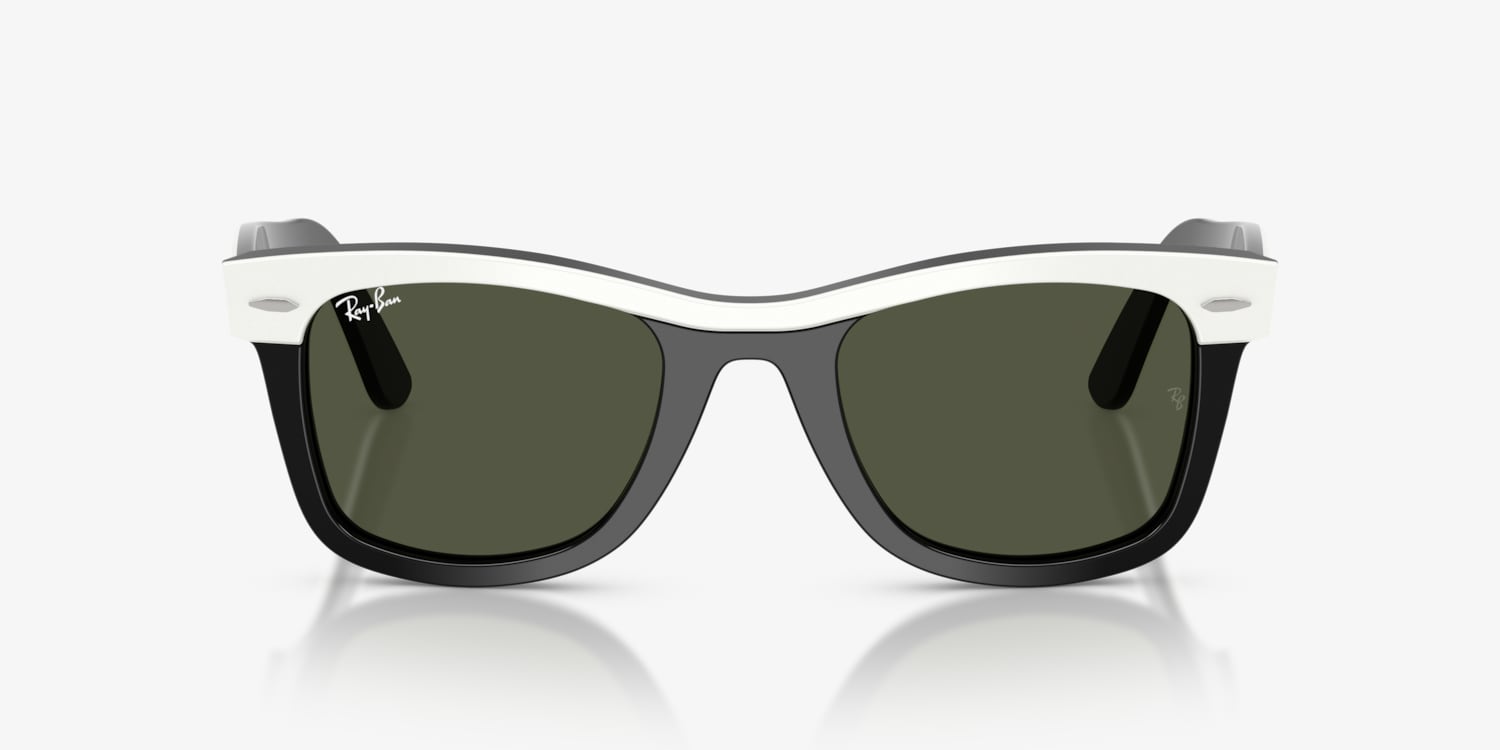 Ray-Ban Wayfarer Street Neat glasses are a modern take on the iconic Wayfarer shape. These square-shaped frames are made from durable acetate, offering both style and comfort. The polished white on black color scheme adds a touch of sophistication, while the green solid color lenses provide excellent sun protection.