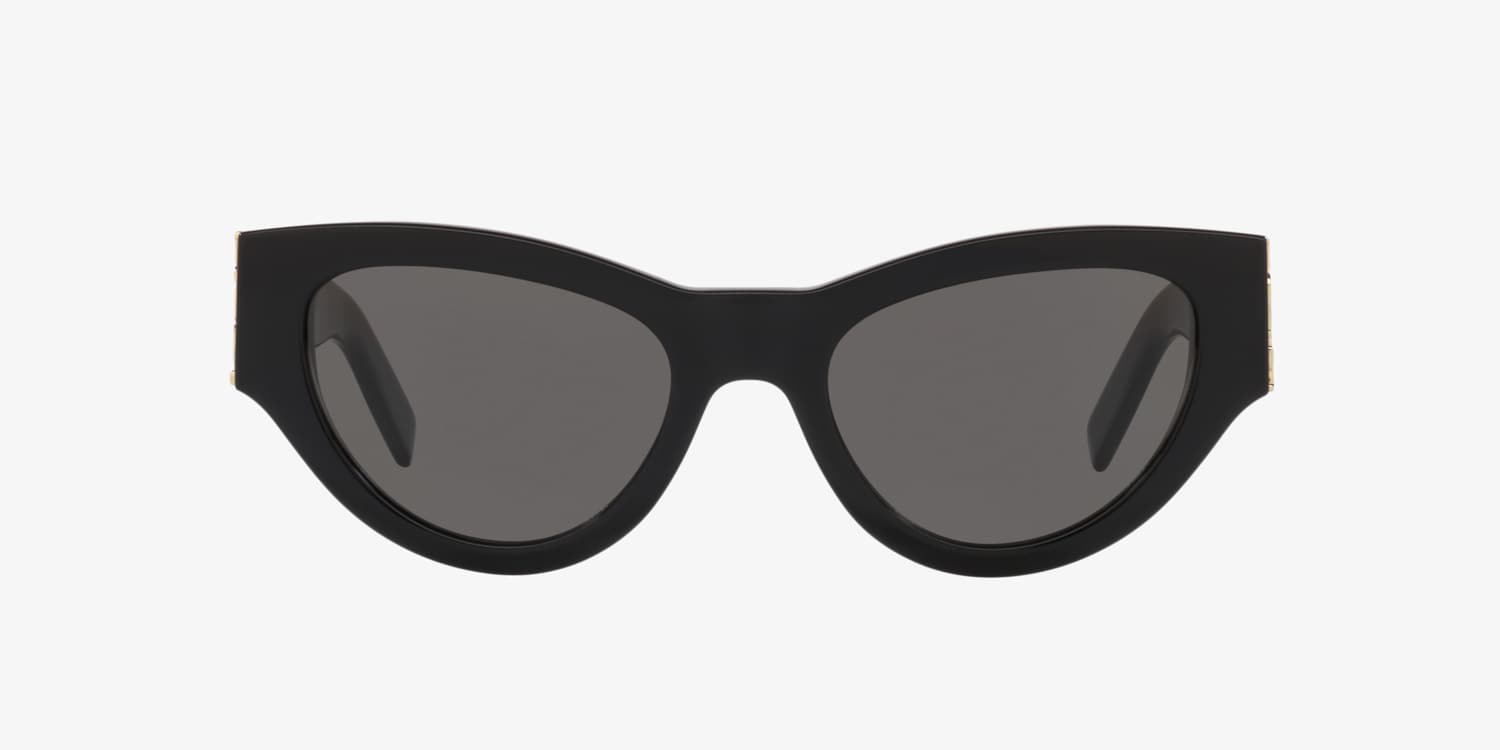 Elevate your eyewear collection with the Saint Laurent SL M94 sunglasses. These sleek cat-eye frames are crafted from durable plastic with a full-rim design for bold definition. The black sunglasses feature a black frame front that pairs seamlessly with grey solid-color lenses, exuding timeless sophistication. Acetate temples add a refined touch, making these Saint Laurent sunglasses a stylish choice for any occasion.