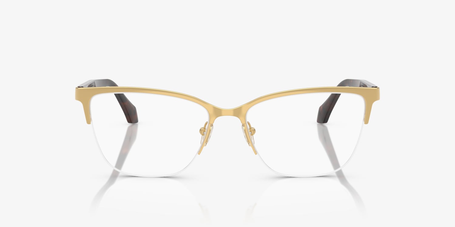 Elevate your fashion and optical standards with Versace VE1304. These cay-eye glasses features a polished gold metal frame that exudes elegance and sophistication. The frame color finish adds a touch of glamour, making these shades a must-have accessory for any fashion-forward individual. Embrace your unique style with these stunning frames. Available with prescription lenses.
