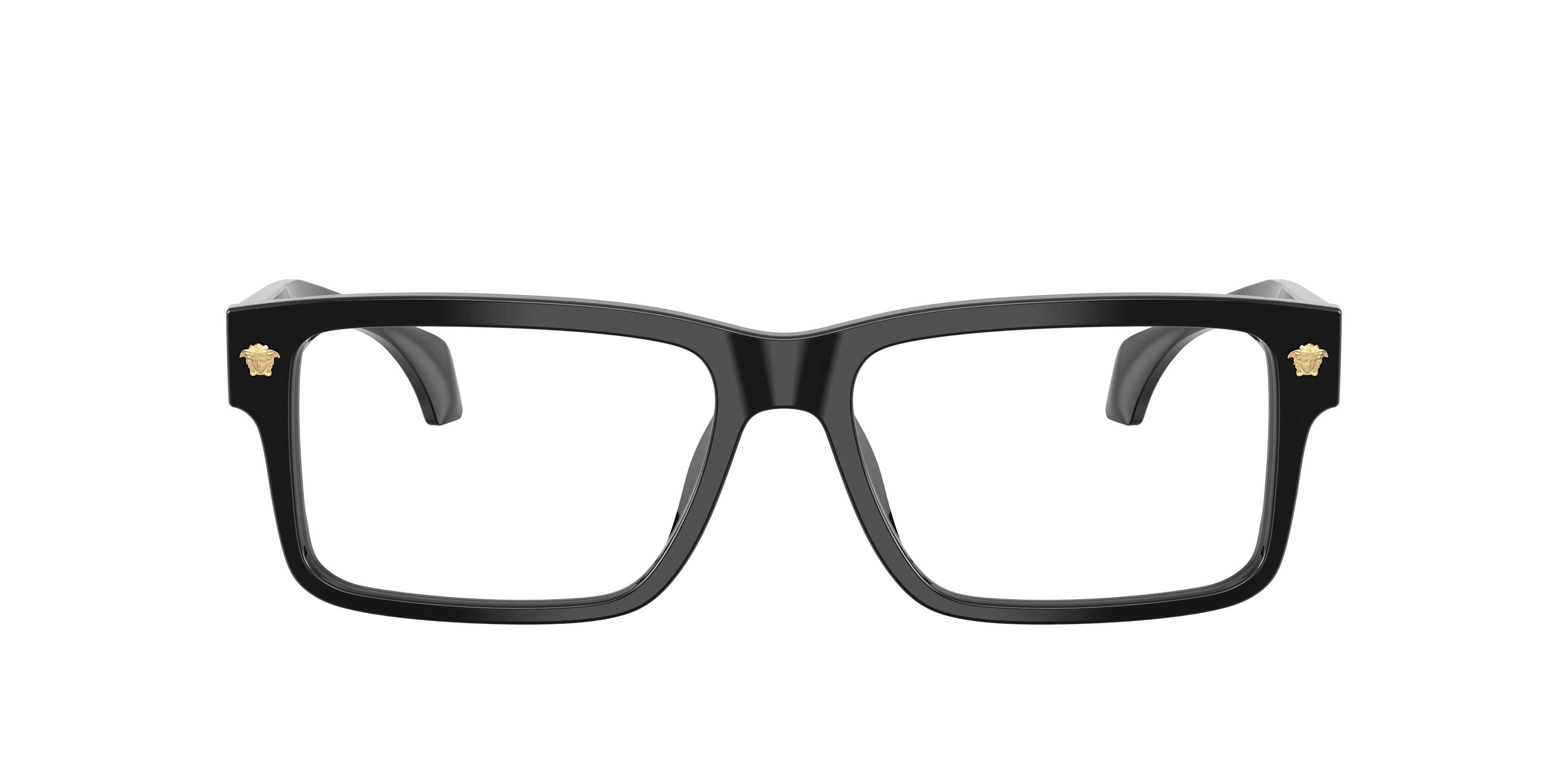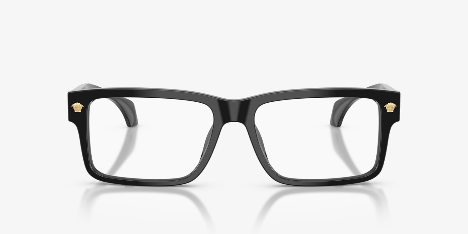 Elevate your eyewear game with the Versace VE3391U optical glasses. These rectangular black glasses, crafted from durable plastic, boast clean lines and angular edges for a structured, contemporary look. Finished with a black frame front and clear lenses, they embody understated sophistication. Heritage Medusa decor on the acetate temples adds a touch of opulence, celebrating the brand's iconic style. Designed with universal fit frames and a standard bridge, these Versace eyeglasses ensure enduring comfort with timeless elegance.