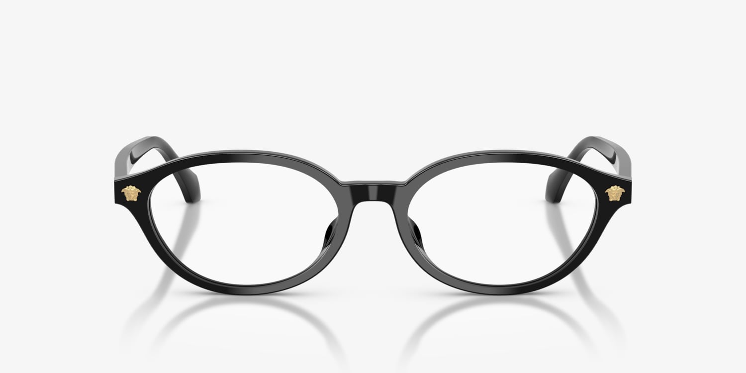 Elevate your everyday eyewear with the Versace VE3393D optical glasses. The black eyeglasses feature oval frames with soft, rounded contours for a timeless yet versatile design. Crafted from lightweight plastic, the slim acetate temples are adorned with the iconic Medusa motif, showcasing Versace's signature bold glamour. Finished with a low bridge fit for effortless comfort and style, these Versace eyeglasses are the epitome of modern refinement.